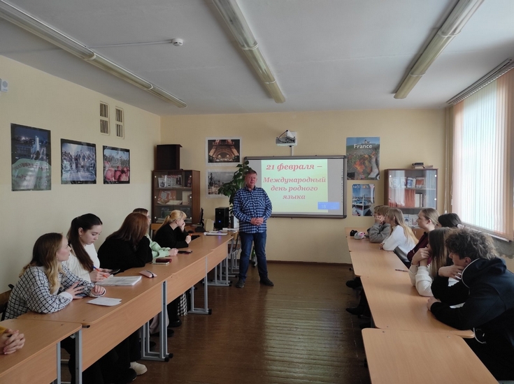 24 февраля учащиеся группы 1112251 отметили Международный день родного языка в рамках увлекательного мероприятия. Куратор учебной группы Сергей Петрович Зубрий познакомил студентов с историей праздника, его предпосылками и задачами. Завершилась встреча познавательной викториной, где студентам предстояло блеснуть знаниями, переводя белорусские пословицы на русский язык.