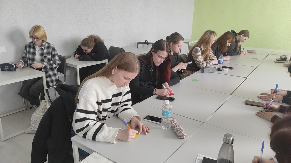 Особенно живой и эмоциональной стала вторая часть мероприятия, где участники перешли от глобальных фигур к своей повседневной жизни. Оказалось, что среди девушек группы есть талантливые художницы, спортсменки и будущие специалисты, успешно совмещающие учебу с творчеством.