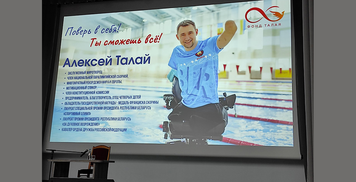2 октября студенты 1 курса факультета иностранных языков приняли участие в вдохновляющем тренинге «Уроки мужества. Духовно-нравственное воспитание молодежи и идеология белорусского государства». Спикером тренинга стал Алексей Талай — чемпион Паралимпийских игр, благотворитель и общественный деятель, человек, который активно занимается просветительской работой. Выступление Алексея Талая было не просто лекцией, а живым примером того, как мужество и вера в себя могут изменить жизнь.