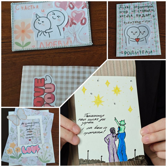 Каждый подходил к процессу по-своему: кто-то вырезал цветочки, кто-то добавлял блёстки, а кто-то придумывал целые мини-истории на бумаге. Фантазия гуляла свободно, клей не успевал остывать, а столы превращались в настоящие арт-островки.