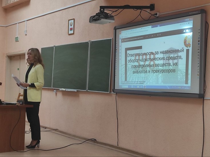 Марина Валентиновна подробно остановилась на статьях Уголовного кодекса Республики Беларусь об ответственности за незаконный оборот наркотических средств, психотропных веществ, их аналогов и прекурсоров. Она подчеркнула, что изготовление, распространение, употребление наркотических и психотропных средств не только нарушают закон, но и могут причинить непоправимый вред здоровью общества и отдельных граждан.