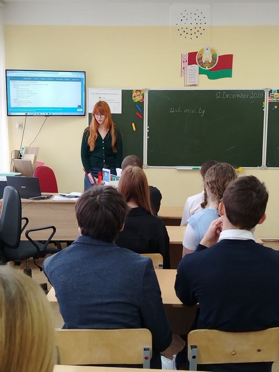 В рамках профориентационного марафона Любовь Якименко, студентка факультета иностранных языков, встретилась со старшеклассниками ГУО «Лошницкая средняя школа Борисовского района» и ГУО «Лошницкая гимназия Борисовского района».