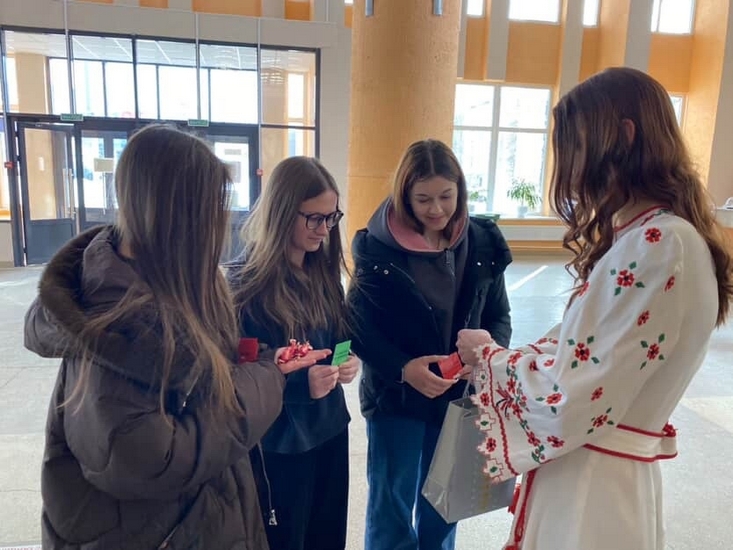 В преддверии Международного дня родного языка представители студенческого совета факультета Екатерина Ткачева и Виталина Раговская провели интеллектуально-развлекательную игру «Размаўляй па-беларуску».