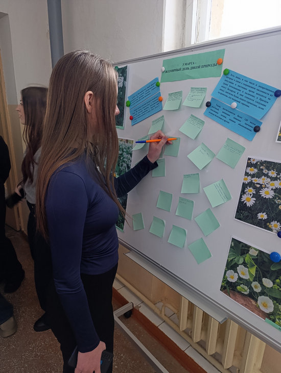 Участники акции поделились своими идеями, как внести вклад в защиту дикой природы. Среди предложенных мер: бережное отношение к редким растениям, участие в субботниках, экономия энергоресурсов, сортировка мусора, запрет на разведение костров в лесу и многие другие. Все предложения направлены на формирование ответственного отношения к природным богатствам.