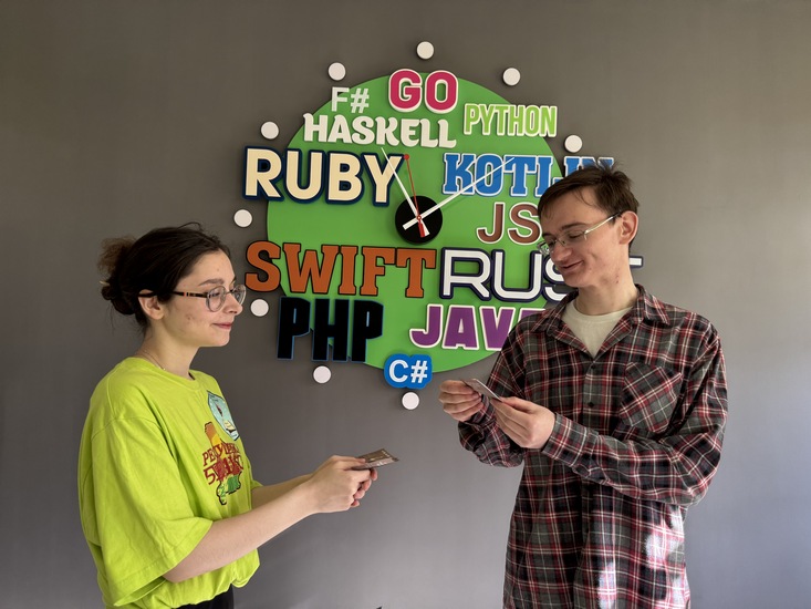 Разработка раздаточного материала. Председатель студенческого совета Дарья Красовская создала серию тематических карточек с выдержками из статей Конституции.