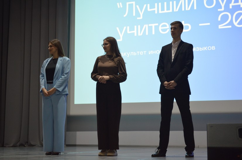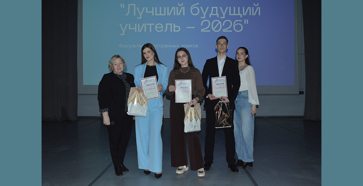 25 марта состоялся факультетский этап конкурса профессионального мастерства «Лучший будущий учитель-2026». За право представлять факультет иностранных языков в финале университетского конкурса боролись три студента 4 курса — Анастасия Вьюновец, Владислав Отрубенко и Екатерина Груммо. Участники должны были представить на суд жюри собственное видение себя в профессии, найти выход из затруднительной педагогической ситуации, а также продемонстрировать мир своих увлечений и интересов. Каждый из конкурсантов открылся зрителям с новой стороны и доказал, что заслуживает победы. Однако победитель в конкурсе должен быть только один: факультет иностранных языков в финале университетского конкурса представит Владислав Отрубенко.