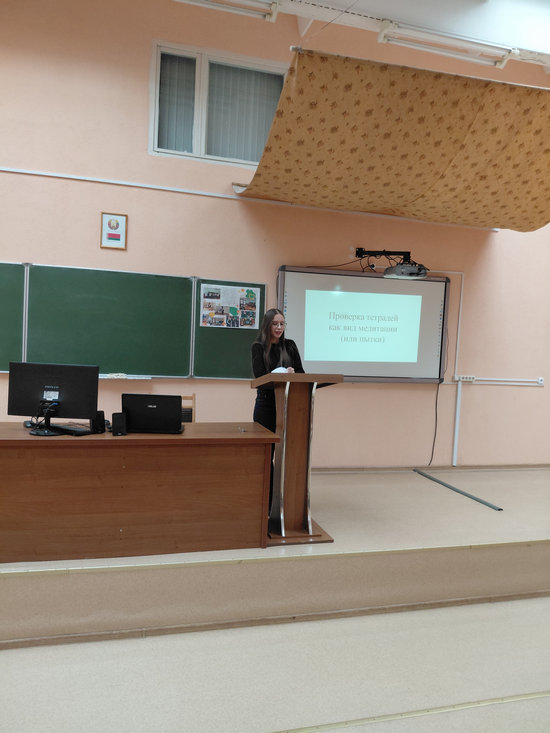 Студенты поделились своими впечатлениями о первом педагогическом опыте, рассказали о достижениях, удачах и трудностях работы в школе, показали фото- и видеоотчеты. Многие выступающие творчески подошли к подготовке отчетного мероприятия — прозвучали авторские стихи, юмористические наблюдения и шуточные рекомендации, были продемонстрированы видеоролики и презентации, подготовлен информационный плакат о школьных буднях. Наиболее яркими были выступления Груммо Е. и Савицкой М. (СШ №43, СШ №38), Белой Д. (СШ №23), Вьюновец А., Космачевой Е. (СШ №26), Матюшонок А., Валовик А. (СШ №2 г. Кличева), Винель Я. (Гимназия №2 г. Костюковичи), Капашиловой М., Лысиковой Е. и др. (СШ №4), Купцовой А. (СШ №38). Творчески и оригинально подготовили отчетные выступления Крупенина В., Кузьменкова В., Якименко К., Карчевская А. (СШ №4, СШ №38), Черепко К., Белик В. (СШ №24). Спасибо всем участникам конференции!