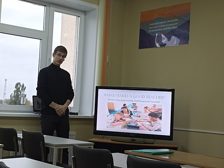 7 октября 2025 г. состоялся круглый стол на тему «10 качеств хорошего учителя» с участием студентов 4 курса факультета иностранных языков. Участники круглого стола выделили ключевые качества педагога, такие как терпение, умение объяснять, эмпатия, творчество, ответственность, коммуникабельность, профессионализм, вдохновляющая мотивация, адаптивность и справедливость. В ходе встречи студенты обменивались личным опытом и предложили рекомендации для будущих педагогов. Мероприятие помогло углубить понимание роли учителя и важности профессиональных и личных качеств в учебном процессе.