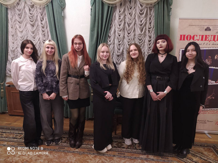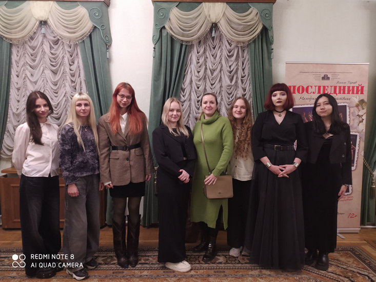 10 октября 2025 г. заведующий кафедрой романо-германской филологии Шевцова Алеся Константиновна вместе со студентами 4 курса факультета иностранных языков посетили мистическую трагикомедию «Старосветские помещики» по мотивам повести Н. В. Гоголя. Это история о той самой «старосветской» любви — нежной, сердечной привязанности, которая с годами превращается в ритуал и оказывается сильнее самой смерти. В спектакле тонко переплетаются мягкий юмор и щемящая нежность, а также сквозит та самая мистика, присущая перу Гоголя. Здесь стирается грань между реальным и потусторонним, а вечная любовь обретает подлинную, почти осязаемую форму, заставляя поверить в то, что истинная связь душ не знает предела и конца.