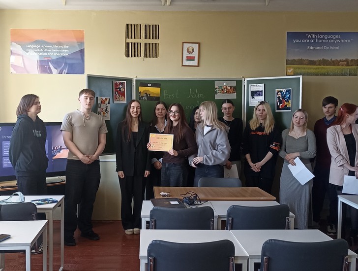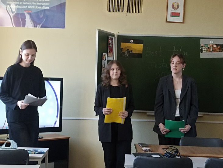 23 марта студенты 3 курса факультета иностранных языков окунулись в атмосферу кинофестиваля, примерив на себя роли ведущих, режиссеров и актеров, кинокритиков и членов жюри. Как известно, кино — это мощнейшее средство воздействия на сознание, способное формировать мировоззрение, обучать и развлекать. За победу в номинации «Лучший фильм» боролись все номинанты, представляя киношедевры, которые, по их мнению, достойны высокой награды. Кинокритики и члены жюри внимательно следили за происходящим на сцене и экране, задавали вопросы, оценивали. Благодаря слаженной работе ведущих, ярким презентациям кинематографистов и продуманным номинациям жюри кинофестиваль получил высокую оценку зрителей.