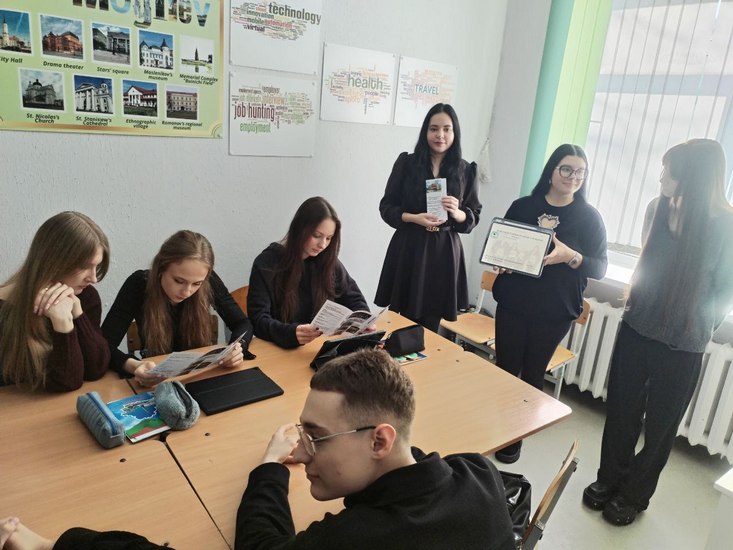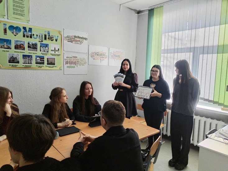 В рамках педагогической практики 26.02.2026 г. студенты 4 курса факультета иностранных языков Кулицкая Алина, Чабанова Анастасия, Волкова Карина и Кидакова Дарья при содействии методиста Бэтовой Е. Н. провели профориентационные мероприятия для учеников 11 классов в ГУО «Средняя школа №21 г. Могилева».