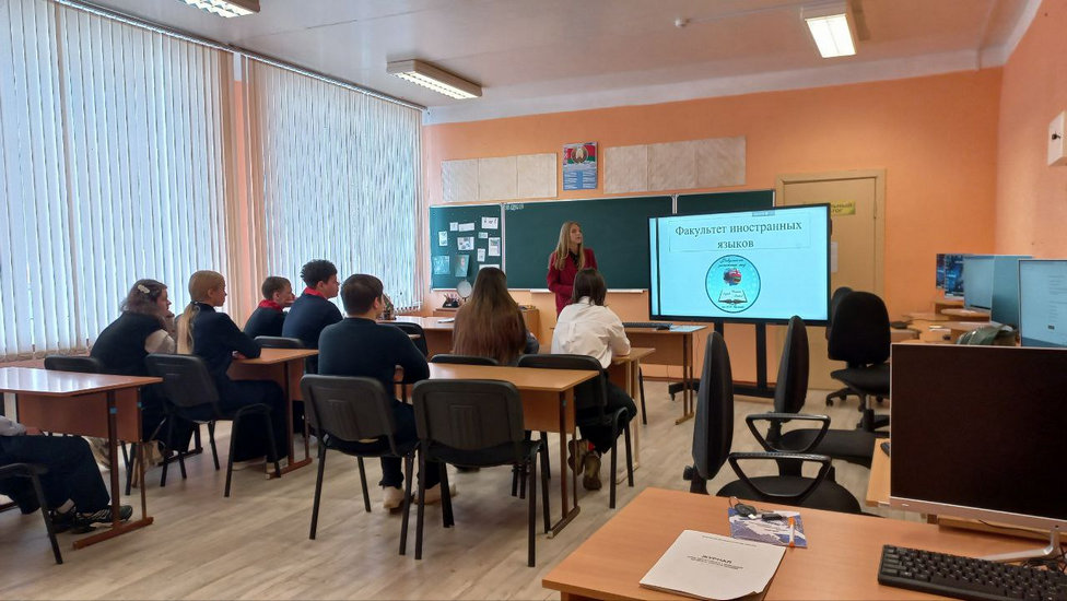 23 февраля 2026 г. студенка факультета иностранных языков Матюшонок А., которая проходит педагогическую практику в ГУО «Несятская средняя школа Кличевского района» под руководством преподавателя-методиста А. Д. Тепляковой, провела профориентационное мероприятие, которое было направлена на популяризацию факультета иностранных языков, с учащимися 7–11 классов. Студентка аргументированно и увлекательно рассказала о преимуществах обучения в МГУ имени А. А. Кулешова, делясь личным опытом и вдохновляя аудиторию. Студентка ответила на все интересующие вопросы учащихся о поступлении и обучении в университете, поделилась информацией о возможности обучаться по трем специальностям на факультете, а также рассказала, что на факультете есть центр английского, китайского, немецкого и французского языков. Встреча прошла оживленно и была насыщенна интересными фактами о жизни и обучении в университете. Учащиеся получили информацию о волонтерских проектах, программах международной академической мобильности, а также о научной, учебной и творческой деятельности. В конце встречи каждому участнику мероприятия был предложен раздаточный материал с контактными данными нашего университета.
